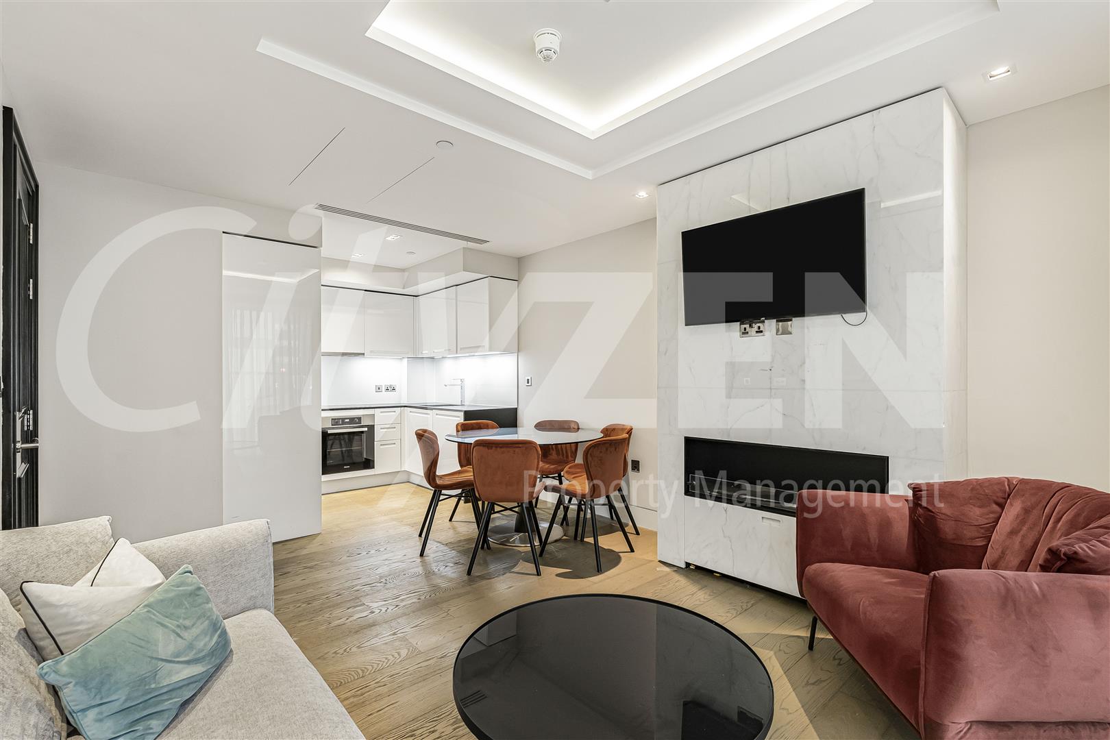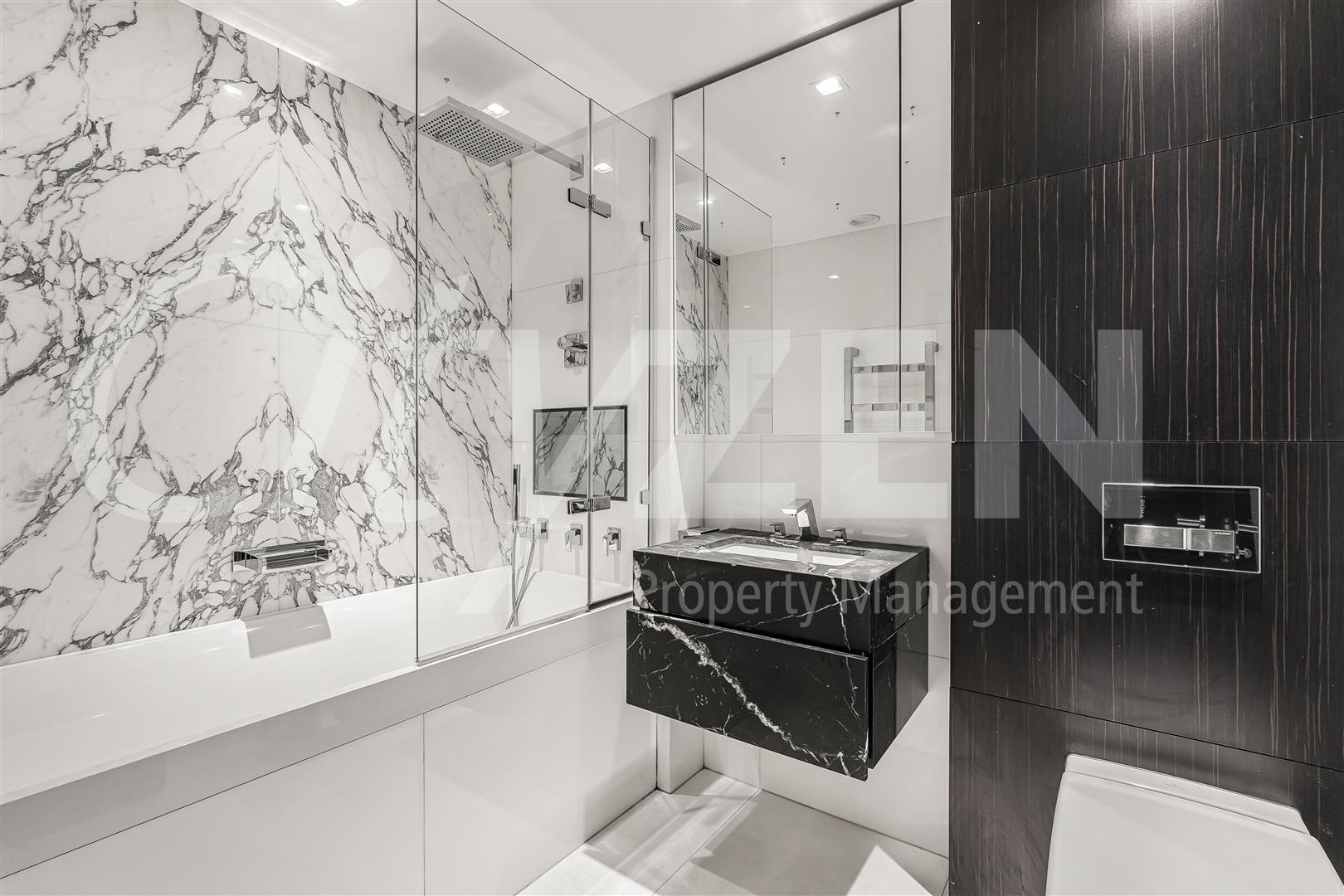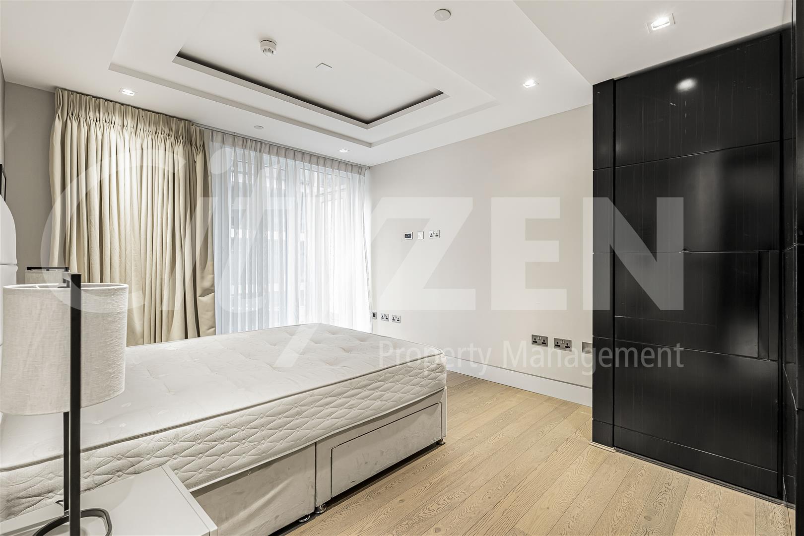 The apartment has wooden flooring throughout, air cooling and communal facilities including a pool, gym, cinema and 24 hour concierge.