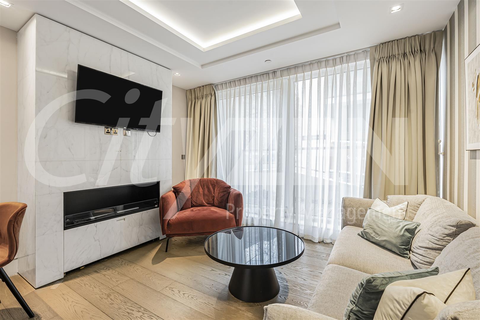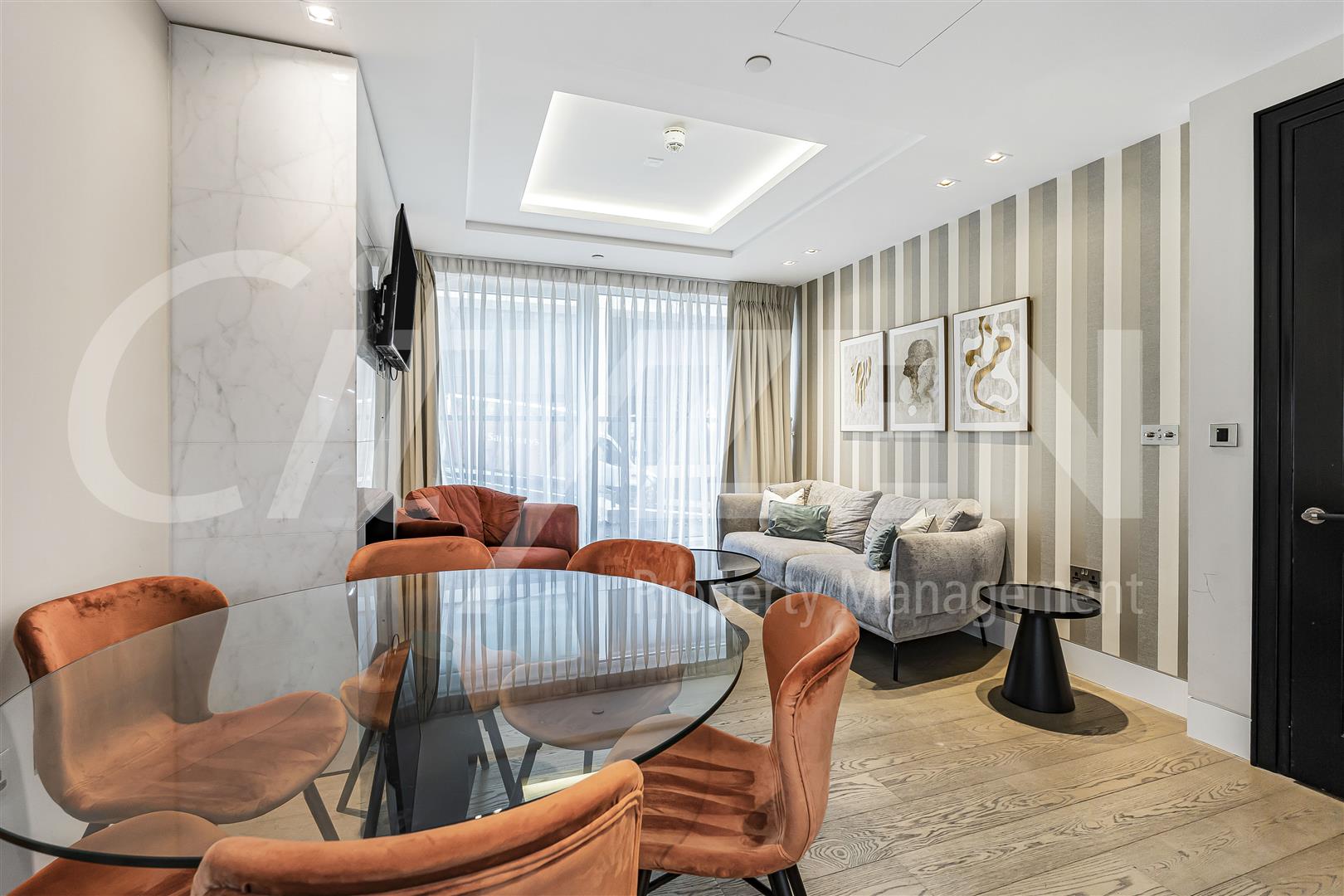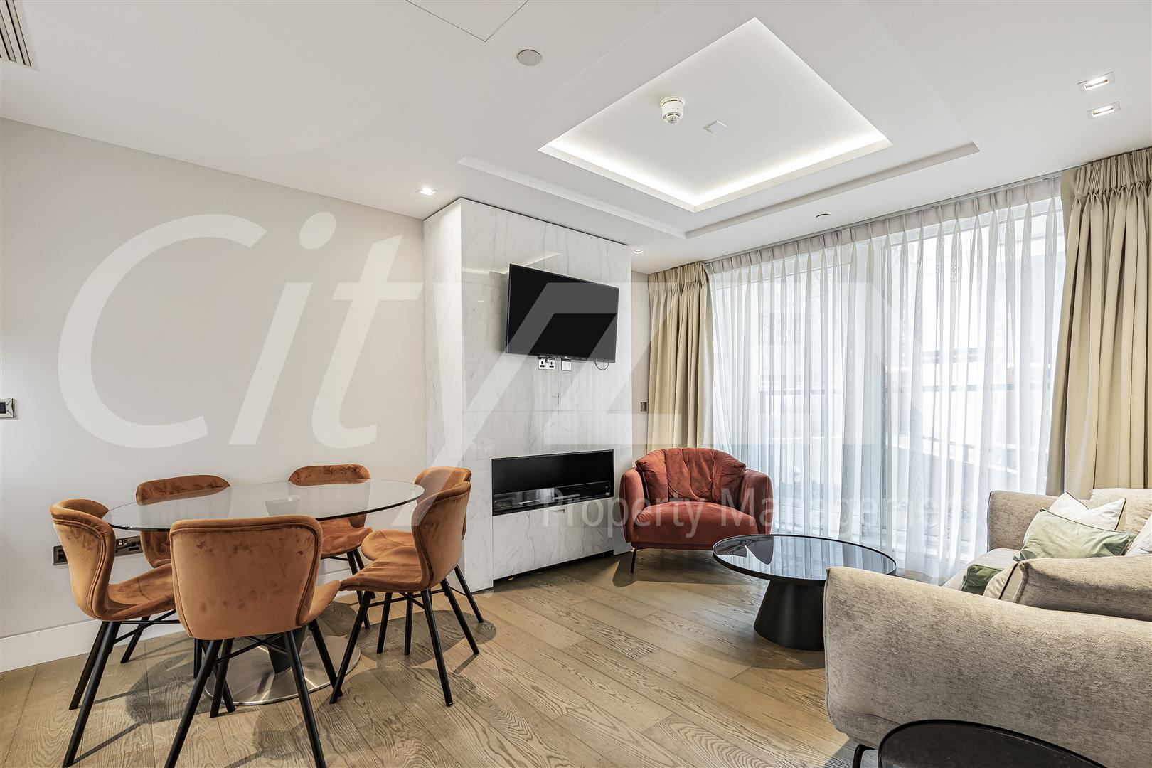 The apartment has wooden flooring throughout, air cooling and communal facilities including a pool, gym, cinema and 24 hour concierge.