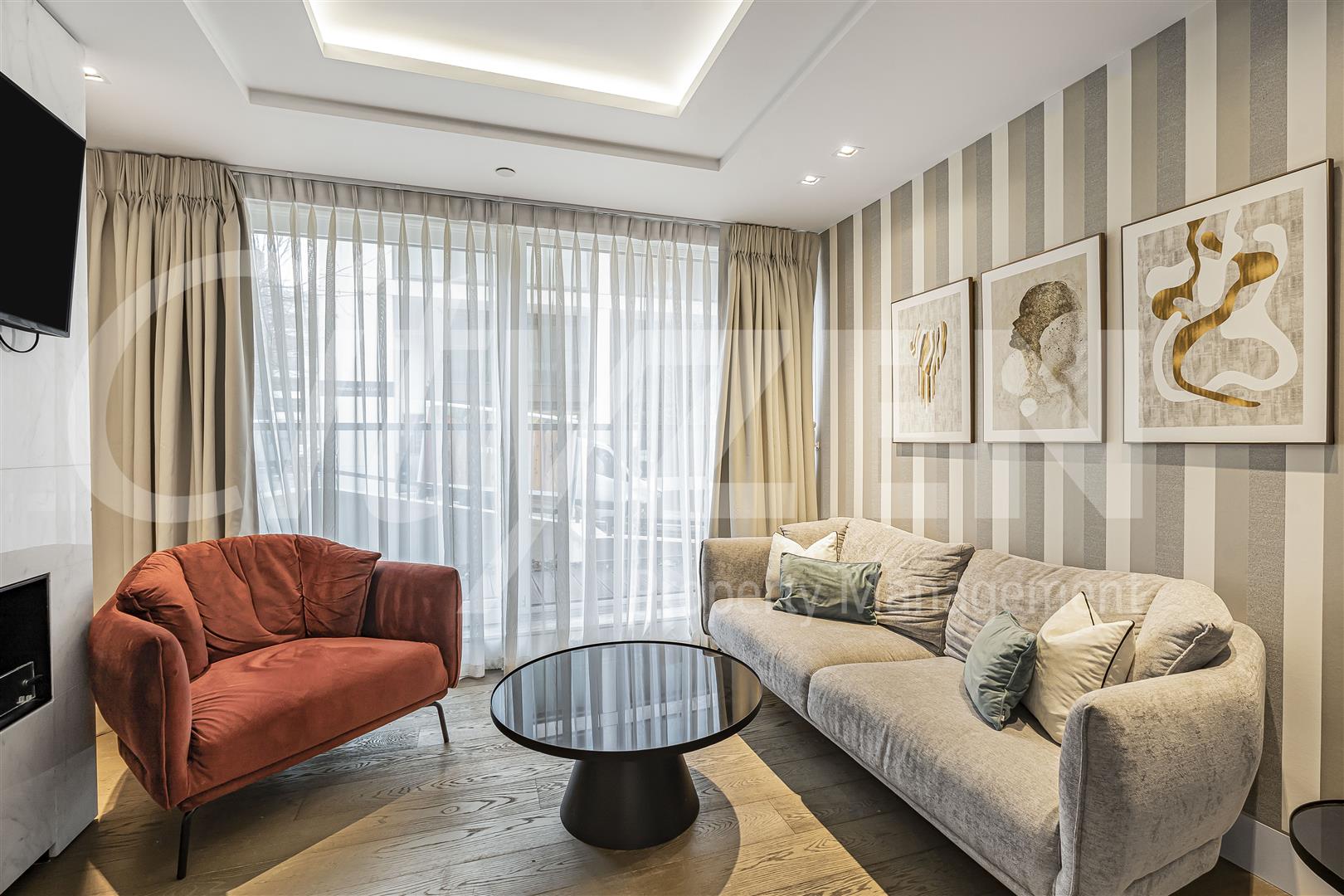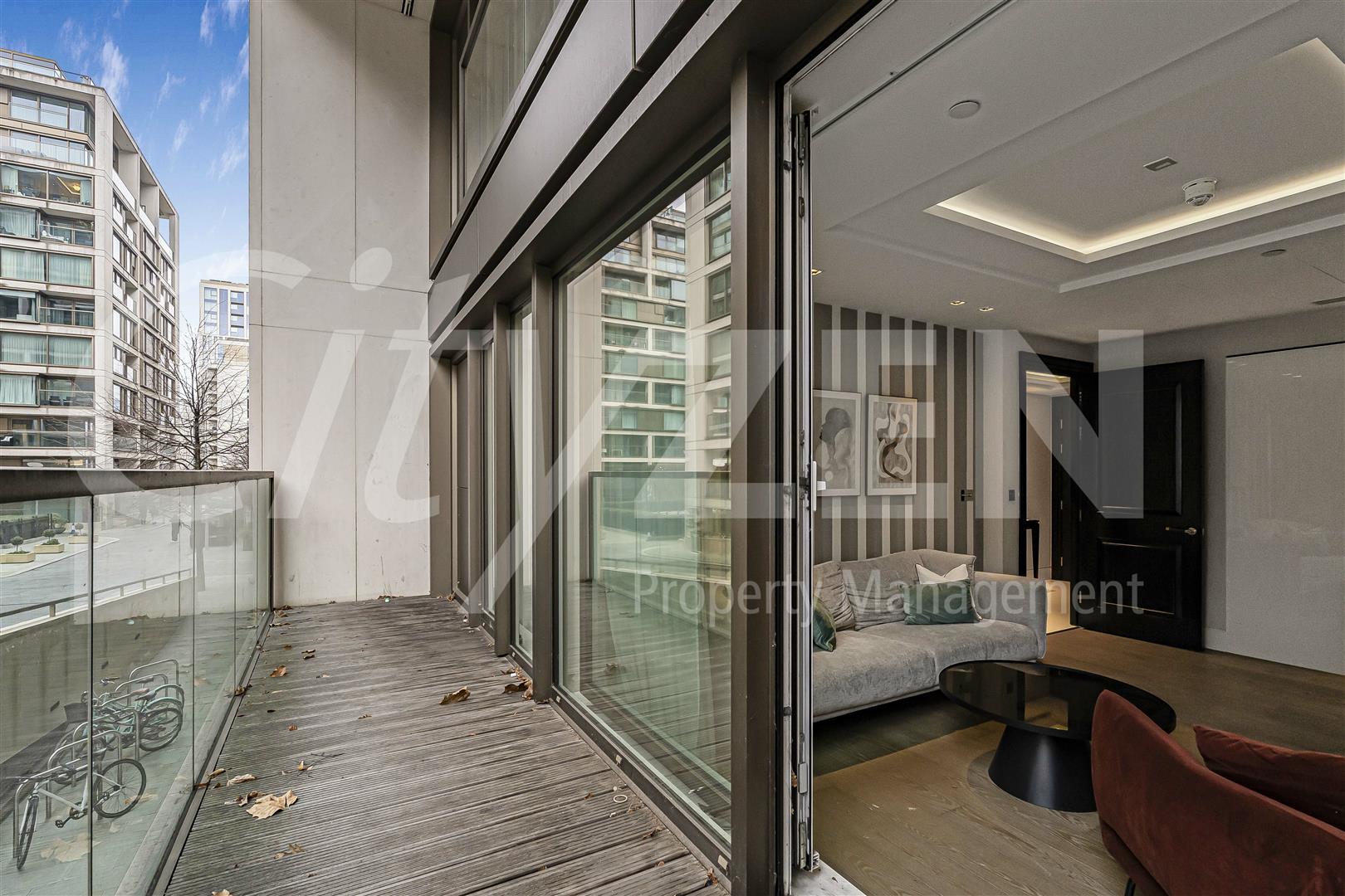 Our apartment benefits from a 22 foot terrace off the reception room and a balcony located off the master bedroom. The accommodation is set over 765 square feet and comprises a large reception room with open plan luxury kitchen and access to a private terrace. The master bedroom has ample built in storage, a luxury shower room and its own balcony, the second bedroom is a double and has use of the luxury family bathroom.