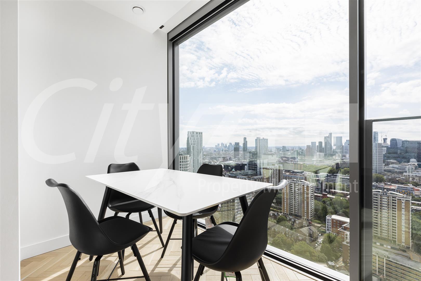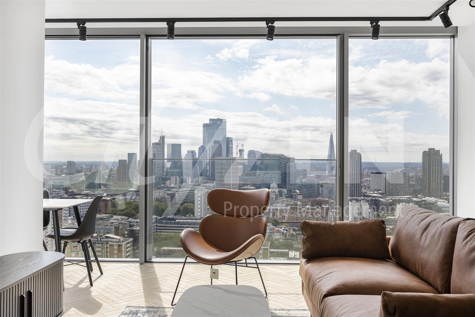 Set over 777 square feet and comprising a spacious reception room with floor to ceiling sliding windows overlooking London, dining area with floor to ceiling windows, luxury fully fitted kitchen with "Miele" appliances, double bedroom with ample storage, second bedroom with fitted wardrobes and a luxury bathroom.