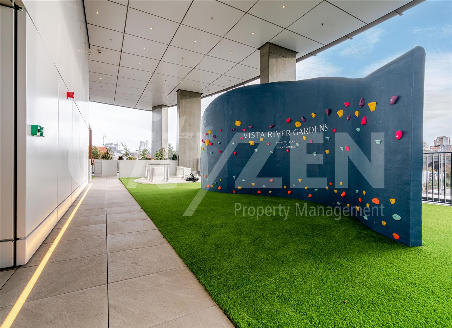 Vista River Gardens is one of Manchester’s most exciting new residential communities, set along the River Irwell and designed to provide an exceptional lifestyle for residents. The development offers a wide range of first-class amenities, including a 24/7 concierge, state-of-the-art gym and wellness suite, cinema room, co-working lounges and beautifully landscaped gardens. Residents can also enjoy rooftop terraces with impressive views, outdoor fitness areas and a selection of social spaces ideal for relaxation or entertaining. Pet-friendly facilities, including a dedicated dog spa, as well as secure cycle storage.