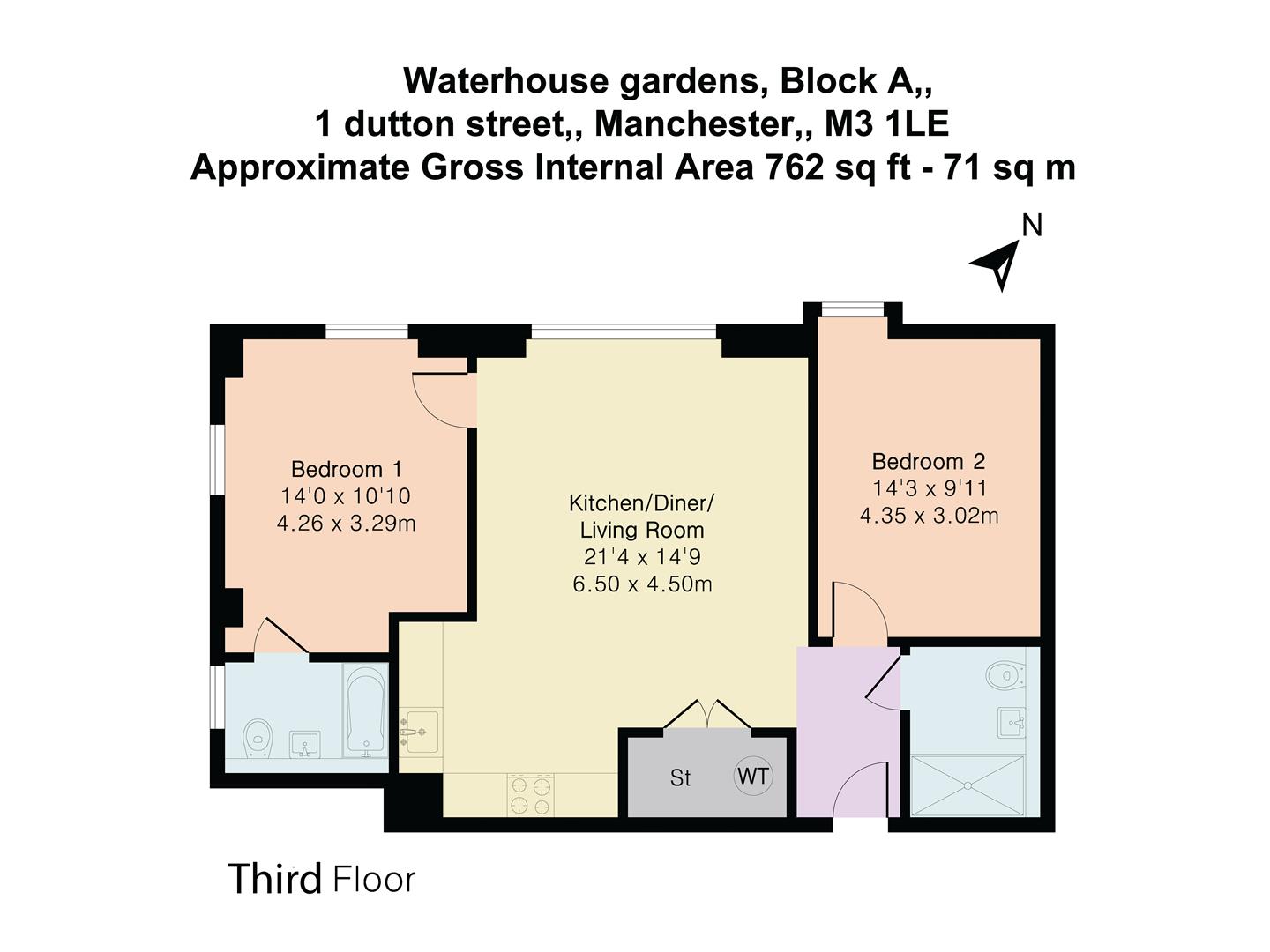 Discover this beautifully designed first floor 2 bedroom 2 bathroom apartment within the brand-new Waterhouse Gardens development, located just a 10-minute walk from Manchester city centre.This spacious, contemporary home features an open-plan layout with a sleek, modern kitchen complete with integrated appliances, ideal for stylish urban living.